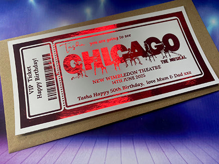 Chicago Gift Ticket – A Personalised Shimmering Foil Theatre Surprise!
