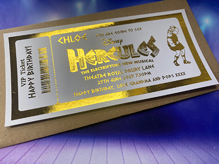 Hercules Personalised Gift Ticket – A Legendary Shimmering Foil Theatre Surprise!