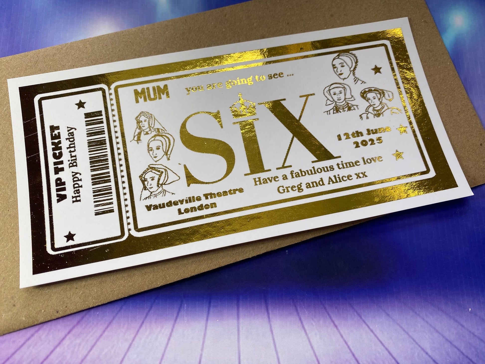 Six The Musical Surprise Theatre Foil Gift Ticket